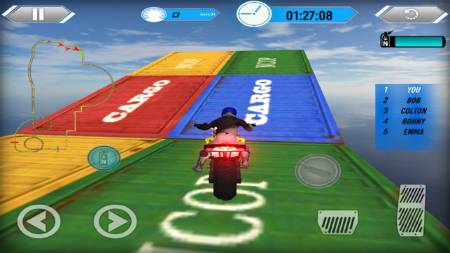 你准备好驾驶你的摩托车通过天空的道路吗?你有勇气执行不可能的任务和特技,同时在天空的道路上狂奔着?特技赛的完美技能?如果是的话,那就是一个完美的赛车游戏。如果你喜欢骑自行车和特技,那么你需要马上玩游戏!不可能的轨道自行车特技比赛:云驾驶让您有机会在不可能的轨道上大怒驾驶。执行不可能的特技,炫耀你的技能世界。小心你的愤怒的驾驶,否则你会跌倒在下面的海洋。 五个冒险的水平,几乎困难的轨道作为天空的道路,如果你不够熟练,在这个自行车赛车游戏中表演和赢!清晰的水平,不断解锁一个新的和改进的电机循环!展示您执行的自行车特技,看到你可以完成不可能的任务。加入这个赛车游戏,并通过摩托车驾驶完成真正的特技。…