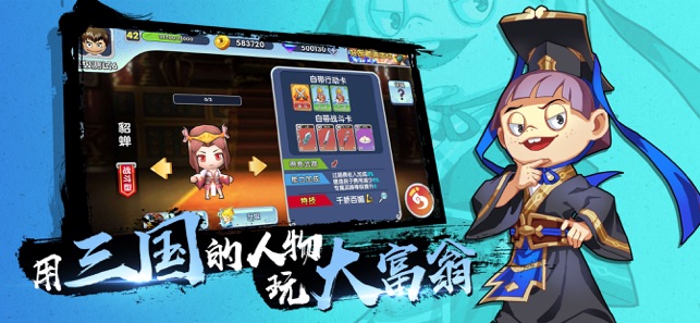 【游戏简介】 《富豪闯三国》是款大富翁玩法的原创3D手游,在传统大富翁土地经营玩法的基础上,加入了创新的卡牌战斗,房屋建造,运气酒馆,角色必杀等玩法。 众多性格迥异,技能独特的角色可供玩家选择。故事模式上手轻松简单,多人模式策略丰富有深度。 【游戏特色】 策略型角色:根据角色类型不同,爱好和平的玩家可以选策略型角色拿卡运营买地。 战斗型角色:喜欢战斗的玩家可以选择战斗型角色造起兵营疯狂抢地。 聚会型游戏:一起组队匹配,原创三国人物,一起打败魔王。 【玩家交流】 富豪闯三国玩家QQ交流1群:546875966 交流2群:817524788 【联系我们】 游戏过程中遇到问题或是有更好的建议请联系玩…