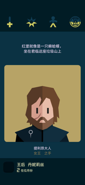 “王权:权力的游戏”是热门划卡游戏“王权”融合了HBO®获奖剧集《权力的游戏®》剧情改编的游戏,由Nerial工作室及Devolver Digital倾情呈现。通过火之女祭司梅丽珊卓的视角,玩家可扮演瑟曦·兰尼斯特、琼恩·雪诺、丹妮莉丝·坦格利安以及其他著名角色,坐上铁王座并精心斡旋于七王国之间错综复杂、勾心斗角的关系当中。对狡猾的政治对手,要采取冬天般无情的策略予以打压;对麾下摇摆不定的封臣,则要传递掷地有声的命令展示手腕。玩家要赢得民意、维持平衡,尽力延长统治。或许只有这样,在即将到来的凛冽寒冬之中,方可有一线生机。 冰火天团:雄踞铁王座上的,可以是瑟曦·兰尼斯特,亦可是琼恩·斯诺、丹妮…