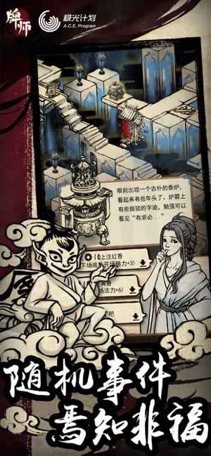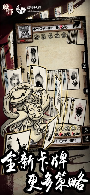 《牌师》是一款关于古代妖怪世界冒险的卡牌策略游戏,独特的水墨画风,危机四伏的地府黄泉,随机的地图和妖怪,结合Roguelike和DBG的卡牌玩法,剑客、屠夫、太极、和尚、道士五种职责各有所长,来创造你的最强牌组! ---游戏特色--- 1、独特的黑白水墨画风 经典水墨演绎妖怪传奇,别致画风描绘地府黄泉! 2、有深度的游戏机制 结合Roguelike和DBG的玩法,地图和事件随机,妖怪与职业设计充满个性,创造富有魅力的游戏体验! 3、个性鲜明的职业 剑客:专属“剑”系卡牌,搭配“风”系,灵动轻盈,抽牌减费。 屠夫:专属“怒”系卡牌,搭配“火”系,怒火中烧,自残暴击。 太极:专属“反”系卡…