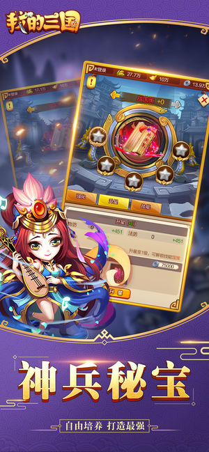 《我的三国》是一款三国题材的RPG游戏。为了承载每位玩家建功立业,驰骋三国热忱愿望,玩家将化身主公,带领三国武将,在这乱世中,过五关斩六将,攻城掠地,最终一统三国。 游戏特色: 【指尖微操,轻松休闲】 游戏操作,只需点点,武将战斗,全部自动 【人物场景,精美立绘】 各种武将造型,让人爱不释手,给人非一般的视觉享受。 【攻城掠地,征战四方】 还原三国战场,超多地图,数百城池关卡等你挑战 【多线培育,最强军团】 多种培育体系,武将、装备,神兵秘宝,自由培养,打造最强