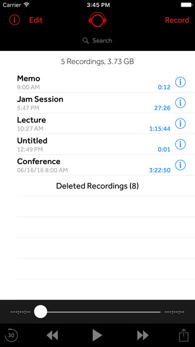 iTalk Recorder Premium is a full-featured recording app with a streamlined and intuitive user interface. Press the big red button to record; press it again to stop. You can append to existing recordings, choose from three levels of recording quality (11.025, 22.05, or 44.10 kHz sample rates), and manage your recordings, all with just a fingertip. You can email recordings straight from iTalk. iTalk also supports the Share Sheet, AirDrop and direct file sharing through iTunes. Whether you're recording minutes of a meeting, a lecture, or the sounds of birds singing in a meadow far from any electrical outlets, iTalk Recorder Premium puts the sound quality you need in the palm of your hand. Features • High-quality handheld recording • Easy, convenient user interface and controls • Multitasking: set it and forget it; it records in the background • Email your recordings directly from iTalk • Transfer recordings to compatible apps with the Share Sheet. • Transfer recordings to other devices with AirDrop. • Share your recordings on SoundCloud • Supports iTunes File Sharing • Auto-noise cancellation (on iPhone 4) • Built-in search function to locate recordings by title • User-selectable Good, Better, Best sound quality (11.025, 22.05, or 44.10 kHz sample rates) NOTE FOR iOS 7 Users: When launching this app for the first time (either as a new purchase or following your device's OS upgrade), please tap OK when iTalk requests permission to access your device's microphone. If you're experiencing blank recordings, please ensure Microphone access is enabled. In the app, go to Settings>Privacy>Microphone and enable iTalk.