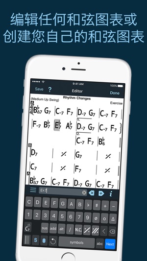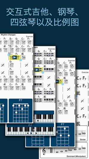 熟能生巧。 iReal Pro提供了易于使用的工具,帮助所有级别的音乐家掌握他们的艺术。 它模拟一支音色逼真的乐队,在您练习的时候为您伴奏。 这个应用也让您创建和收集您喜爱的歌曲的弦图表以作为参考。 ~2010时代杂志50项最佳发明之一~ 数以千计的音乐学生、教师以及世界顶尖的音乐学校 (如伯克利音乐学院及音乐家学院)都在使用它。 “对于一个在练习当中的音乐家来说,它是一项完美的科技:优质的数字音像、可混音、可变调至任何音调并且是完全流动性的。 现在每位有抱负的音乐家都有一支备用乐队在他们的口袋里”。– Tim Westergren, Pandora创始人 • 它是一本乐谱: 创建…