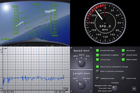 Jump into a jet's cockpit, strap on your seatbelt and blast into the sky with V-Cockpit GPS. It features a unique, photorealistic way of displaying all your iPhone's sensory data. Bored on train or bus ride? Load V-Cockpit GPS and experience mundane things as a passenger in a whole new way. GPS has never been so much fun! FEATURES - Cockpit - HUD - Compass - Fullscreen zoom on each instrument - Diagrams for all displayed data - Aircraft alerts (pull up, stall) - Responsive jet sounds - Realistic radio chatter - Supports all device orientations - Fully configurable units (mph, km/h, kts, m, ft) and sounds - Online help DATA Speed, altitude, vertical speed, g-force, compass, artificial horizon. V-Cockpit GPS is designed to be as accurate as possible, but it is limited by the iPhone's sensor accuracy. GPS accuracy also depends on your location, speed and surroundings. CAUTION Not for operational use. Do not use while driving or doing tasks that require your attention. Do not use it as primary means of navigation.