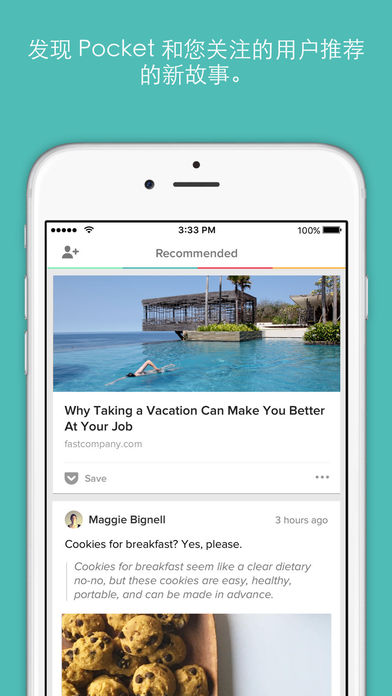 使用 Pocket,您可以快速保存、发现和推荐网络上最吸引您的故事。 -- 保存供以后查看: 下次看到您希望以后再读或再看的文章、视频或链接时,只需将它们保存到 Pocket 即可。它可以在手机、平板电脑和计算机之间同步,这样您可以随时随地,甚至可以在脱机的情况下查看这些内容。 您差不多可以从任何位置将内容保存至 Pocket,包括您的计算机、Safari、电子邮件以及 Facebook、Twitter、Flipboard 和 Feedly 等您喜爱的应用程序。. 漂亮的阅读体验: Pocket 布局干净且方便观看,不管您要阅读和观看什么内容,都不会被分心。您还可以根据自己的阅读风格自定义 Pocket。 发现您会喜欢的故事: 注意 Pocket 以及您关注的用户的精心推荐,快速发现您会喜欢的新故事。 推荐您的 POCKET 中最好的内容: 向您的朋友和粉丝推荐您的 Pocket 中最有趣的故事。 同时还有: •无限存储空间 •方便快速整理的标记 • 可以听文章的文本到语音转换功能 • 使用针对 Safari、Chrome 和 Firefox 的 Pocket 桌面浏览器扩展插件,点击一下即可保存 -- “安装 Pocket,就不用再通过电子邮件向自己发送链接了。”- The Verge “有了 Pocket,在地铁里也能阅读了。在上下班的路上,不会因为无法连接到互联网,Safari 页面刷新就停滞不前,所以你不会看到一个让人绝望的空白屏幕。”- Slate --- 升级到 Pocket Premium,体验更强大的 Pocket(月费 USD $4.99,年费 USD $44.99): • 永久存储库,为所有保存的项目保留个人副本 • 支持全文本搜索,可以找到列表中的任何内容 • 方便快速整理的建议标记。 价格可能因您所在位置而异。订阅费可通过您的 iTunes 帐户从您的信用卡扣取。除非您在当前订阅期到期前至少提早 24 小时取消,否则您的订阅将自动续订。要终止订阅,请禁用自动续订,当前订阅期到期后即终止。取消订阅不能即时生效。对于未使用的订阅部分,不得要求退款。 Pocket 隐私政策:http://getpocket.com/privacy Pocket 服务条款:http://getpocket.com/tos
