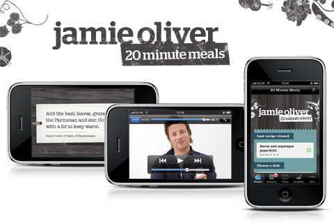Hi Guys, thanks to everyone for all the amazing feedback on my App, which will help you to prepare and cook loads of delicious meals, each one in around 20 minutes. I’ve written 60 brand new recipes for this, each one broken into really easy steps with step-by-step photos so you really can’t go wrong! There’s also a cool shopping list feature which sorts your ingredients by aisle so you'll be really speedy in the supermarket too. As well as all that you’ll find 21 exclusive videos of me with useful tips, tricks and kitchen skills from sharpening a knife to chopping an onion. Download it today and get cooking! Big Love Jamie O xx FEATURES Cooking great meals on your iPod or iPhone has never been so easy. Jamie Oliver's 20 Minute Meals includes: - 60 recipes with easy to follow steps - Stunning step-by-step photography for every recipe - 21 exclusive Jamie Oliver videos featuring tips, techniques and kitchen skills - Beautiful intuitive design - Handy, encouraging voice prompts and tips in every recipe - Easy to use innovative interactive shopping list - Comprehensive kitchen essentials guide - Powerful browse or search recipes by ingredient or recipe type - Shake for random recipe - Toggle portion size by number of guests - All recipes in both metric and US Imperial measures - Once installed, no Internet connection required to view recipes DESCRIPTION Explore 60 mouth-watering recipes with stunning full-screen photography before diving into the unique step-through mode that takes you effortlessly through each recipe. Whilst you're away from the kitchen grab a moment to brush up on your knife skills, or learn how to cook the perfect steak with over an hour and a quarter of beautifully shot video. The simple to use shopping list lets you view recipe ingredients by supermarket aisle, add your own ingredients and even share your list with a friend.