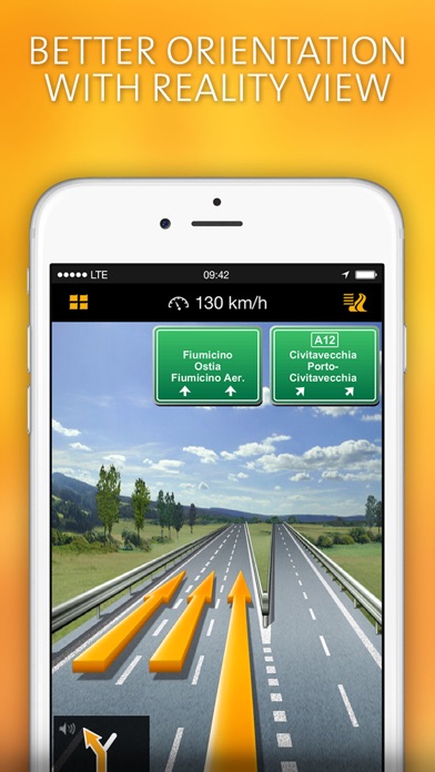Whether on holiday, taking a weekend trip or heading off somewhere as yet unfamiliar – with NAVIGON, you can be sure of getting there quickly and safely! Transform your iPhone into a full-performance satnav system that includes onboard maps so that you can always find your way – even when no internet connection (1) is available. *** Range of functions *** - Onboard map material: only carry the road maps on your iPhone that you really need. Thus you save memory space and can navigate even when no internet connection is available. - Intelligent address entry (1): thanks to the first-class, simplified address entry, which can be operated using the keypad or via voice input, you’ll find your quicker than ever before. - Precise voice commands, including street names: just concentrate on driving the car. - The latest traffic reports (1,2): avoid annoying traffic jams automatically. - Hazard warnings (1,2): you can choose to receive alerts of danger spots such as mobile speed traps. - POI search: find your destination even without entering the address directly – locally, community-based or using Augmented Reality. - Real signage and road sign displays: you always have an overview thanks to photo-realistic views of junctions and road signs. - Dynamic lane assistant: at junctions where the exit is unclear or on motorway exits, be guided into the right lane every time. - Speed assistant: NAVIGON warns you visually or audibly if you are exceeding the posted speed limit. - Optimal route: choose the right option for you, from up to three suggested routes. - Route planning: plan longer trips with multiple destinations en route. - Expanded pedestrian navigation: navigate to your destination on foot as well – or use Urban Guidance (1,2) if you also want to include public transport. - Many other in-app purchases possible: 3D maps showing mountains and valleys, Cockpit and much more. *** Maps *** - Latest Map Guarantee for the latest HERE maps (3), with the following coverage: AL, AN, AT, BA, BE, BG, BY, CH, CZ, DE, DK, EE, EL, ES, FI, FR, GI, HR, HU, IE, IT, LI, LT, LU, LV, ME, MT, NL, NO, PO, PT, RO, SE, SI, RS, SK, UK, VA - NAVIGON FreshMaps XL (2): For a one-off payment, you get the latest map updates from experts up to four times a year, for two years! This ensures that your app is always up-to-date, containing the latest changes of the road network and many new points of interest. *** Please note the following *** The correct positioning of your iPhone in the vehicle is very important for optimum GPS reception. Continuous use of GPS can shorten battery life. Please also note our FAQ section at www.navigon.com. Due to the high data volume of the maps, we recommend using WiFi for the initial installation. NAVIGON wishes you a lot of fun from your navigation – whether in the car, on a bike or on foot! 1) To be able to provide you with the latest reports at all times, some functions require an internet connection (e.g. traffic reports or speed camera alerts). However, the navigation system itself, including address search, speed display, driving lane assistant and much more, does not require the internet. 2) Available as an additional in-app purchase. 3) You get the most up-to-date maps at the time you purchase the app
