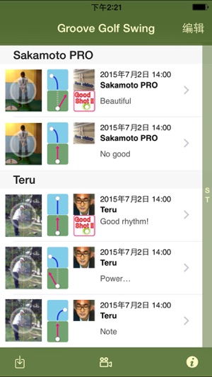 利用iPhone轻松检查您的高尔夫挥杆动作姿势! 自拍定时功能可使您独自一人完成挥杆拍摄! 【操作方法】 1、【拍摄方法】 拍摄方法1 选择相机模式,按中央红色“拍摄开始按钮”开始拍摄(此时会有“Quiet Please『请安静』”的伴音响起);按“拍摄停止按钮”停止拍摄(此时会有观众鼓掌欢呼声伴音响起)。 停止拍摄、图片自动保存后,可重新拍摄24张图片(拍摄时长约3-4秒)。 挥杆者可集中精力挥杆而不必在意相机。 - 请好友帮助拍摄。 - 自拍时,用球杆等物品将iPhone托垫并固定,保持相机稳定。 - 参照高尔夫杂志中刊载的挥杆动作图例,从挥杆者的正前方或后方等多个角度进行拍摄。…