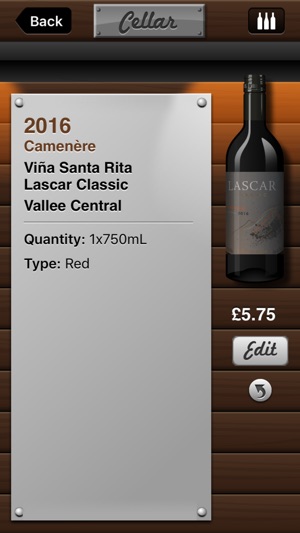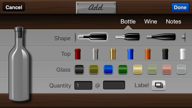 酒窖 是管理酒藏的绝妙手段。它并不只是一个简单的酒名与酿造年份清单 — 而是一个名副其实的酒窖!欣赏酒藏,就如同欣赏实物一样。 每款酒瓶均可从以下方面定制: • 酒瓶的形状 • 玻璃的颜色 • 瓶盖 • 酒的标签 添加每款酒瓶的信息,如: • 酿酒商 • 酿造年份 • 葡萄(含混合型) • 酒名 • 产地 • 类型 • 价格 • 个人备注 • 最佳搭配食物 • 饮用时间… • 个人星级评定 • 得分(百分制) 位置 酒窖 并非单纯的酒窖 — 它同时还是储藏间、意向表及垃圾站!刚刚饮完一瓶?如果感觉不错,可以把它移入储藏间,供以后参考。不喜欢它?请把它移入垃圾站,必要时能找到它。您在餐馆品…