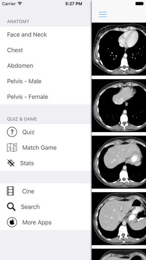 WINNER: NLM "Show Off Your Apps" iAnatomy: A simple, portable anatomy atlas of the face, neck, chest, abdomen, and pelvis. -75 images with 60 actual CT scans of the chest, abdomen, and pelvis -Cadaveric images of the face and neck -Separate male and female pelvis -Over 1300 anatomy identifying labe…