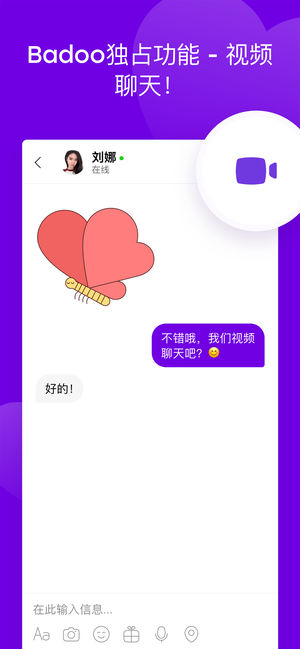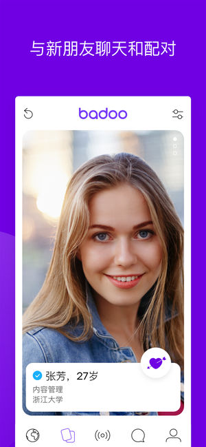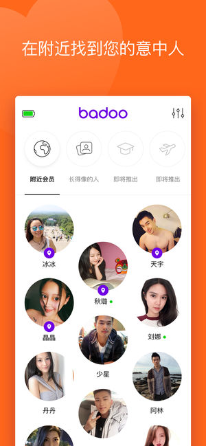想认识新朋友吗?无论您想约会,交友或只是聊聊天 – Badoo都能满足您的需要。我们的会员遍布全球(会员人数超过3亿)- 乘公车、去酒吧、坐在沙发上,甚至去度假时都能找到适合您的人! 您是否知道Badoo是全球最大的约会站点?看看您一直以来都错过了什么吧… 我们是您的最佳选择,因为: - 免费、安全的交友方式 - 全球3亿4千万人信任我们的站点! - 看看附近会员或哪些人与您擦身而过 - 定期推出新功能 - 最可靠的安全认证过程,不再受到虚假账号的困扰 - 除了滑动浏览,还有其他精彩的交友方式 - 找到与名人长得像的人并约会 “A MASS PHENOMEN…