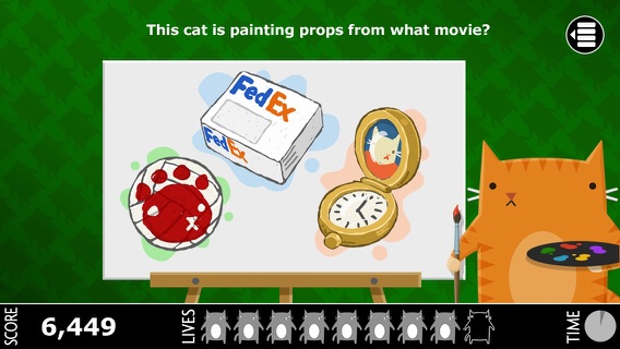 The sequel to MovieCat!, the winner of 148apps.com's Best Trivia App Ever Award, is finally here! Bigger and better than ever, MovieCat 2 features over 1,000 all-new text and visual puzzles about all of your favorite and least-favorite movies! In addition to the puzzles from MovieCat 1 (Double Feature, Screening Room, Dressing Room, Cat Chat, etc.), we have added several new puzzles, like Prop Art, Rhyme Time, Classics, and Details, Details. In addition, there are 25 all-new Cat Scenes for you to unlock and share with your friends! ------------ Here is just some of the praise for MovieCat: In all seriousness, this is just about the most artistically satisfying trivia game I’ve seen in my life. It just oozes crisp, clean, and outrageously cool style... All of the illustrations are ridiculously awesome and are what put this app way, way above other trivia games... If you’re at all a movie lover like me, then you’re going to love this app to an embarrassing degree. Even if you’re not a cat lover, MovieCat! is a total must buy for any film buffs out there. -- AppSafari (5 out of 5 rating) Superb variety of movie trivia questions; adorable cat theme... MovieCat! absolutely nails what's essential for any trivia game: It has an incredible variety of trivia questions, at just the right level of obscurity, and delivered in several interesting ways... Without a doubt, if you love movies, this is the best trivia app since Trivial Pursuit. Get onto the App Store and buy it meow! -- SlideToPlay (4 out of 4 rating, a Must Have) ADDICTIVE!... It might sound corny but I had trouble putting MovieCat! down. That’s how much it hooked me... If you like movies, this really is an unmissable purchase. I haven’t had this much fun with a trivia game for a long time! -- 148apps Pure gold! This is a fun—and just as important, funny—trivia game... The cat theme is totally goofy and will win you over in a heartbeat... If you love movie trivia, get MovieCat. -- IGN (8 out of 10 rating) If you're at all interested in movie trivia, this is the game to get. -- Touch Arcade (named a Staff Favorite) ------------ So if you love movies, get MovieCat 2 - The Movie Trivia Game Sequel today and see how far your nine lives will take you!