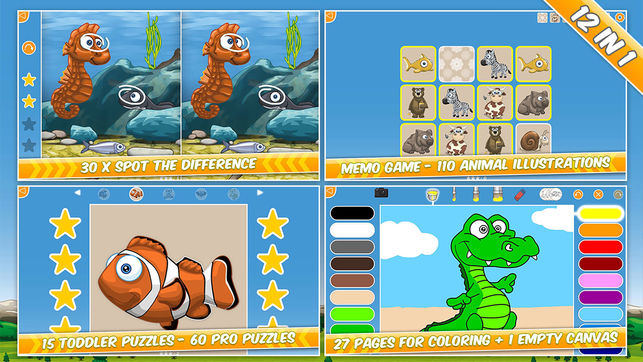 您是否正在艰难地在应用商店内的无数应用中浏览针对幼儿或者学前儿童的应用? 若您的孩子热爱动物,而您又正在寻找即有趣又具有教育意义的应用,那么,拥有大量内容和许多重玩价值,集12种游戏于一款应用中的 儿童乐园 1 就是为您而打造的。 精彩的动物游乐场 中的游戏是为吸引仅2岁大小的儿童而设计的,但其复杂度和难度都有所增加,即使是对于6岁的儿童来说也会具有挑战性。 非常适合兄弟姐妹一起或者孩子们与父母一起玩。 精彩的动物游乐场 中包括12种游戏 - 该版本中最突出的是: • 删除:还不具备绘画或者涂颜色的细动作技能的小家伙们能够擦去每张图片上的银色表面去发现下面有什么东西! • 绘画 :…