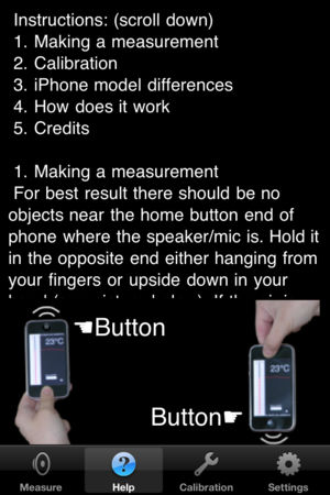 A real thermometer for iPhone. No Internet, no GPS needed. RealTemp measures the temperature of the air near the microphone of your phone. It does this by sending out a waveform through the speaker. PLEASE READ BEFORE BUYING: iPhone 4 and 3GS needs a 30 sec warmup. Does not work on iPod Touch. Only…