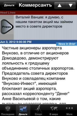 Russia 24/7, Russian News is a very simple e-news reader for the people of Russia. This app brings you the latest news from all the top Russia news sources The application is free from Ads. The app reads the news headlines and stories and places them into scrollable list. When a headline is selected, a full screen window opens with the cover story. This new window also holds up and down arrow to browse all the news. It contains Full News button which displays full news content on the same window and Safari Button which opens the news in safari browser.