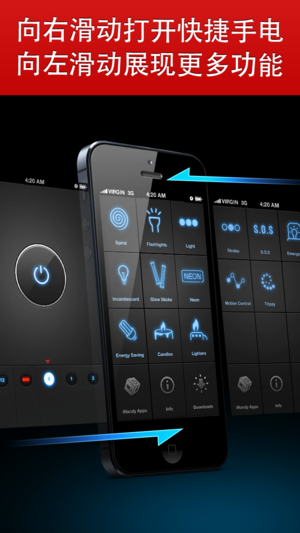 世界上启动最快,灯光最亮, 功能最全的手电筒来啦! 它让你的机器成为真正的照明手电筒, 同时集60多种照明效果为一体, 物美价廉. 现在就来购买这款启动最快, 功能最全, 设计美观的手电吧. 您的手机将立刻摇身一变成为最好的照明工具! ************************************************ 这款产品是由知名公司iHandysoft为您量身订做的。同时,iHandysoft开发的其他很多产品的销量都在苹果软件商店中稳居首位:例如木匠工具箱,水平仪,电子闹钟专业版,电子闹钟免费版等等。因此,这款设计精美的小手电一定会是您不容错过的选择! ********…