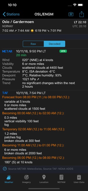 *** AeroWeather: for pilots, aviation enthusiasts, and everyone who is serious about the weather! *** Current and precise weather conditions (METAR) and forecasts (TAF). AeroWeather Pro provides quick and intuitive access to METAR and TAF for airports worldwide. Data can be shown in its original (r…