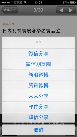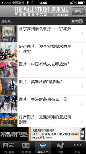 聚焦中国: 华尔街日报在中国拥有超过百人的编辑及新闻团队,其中40人专注于中文内容的服务。 全球视野: 华尔街日报中文网报道主题包括全球商业财经、金融市场、科技和观点。周一早7点至周六早7点不间断更新。 同步更新: 苹果应用程序与华尔街日报中文网实现无缝同步更新,让您随时随地,掌握最新商业资讯 功能: • 新闻、消息及市场数据及时更新 • 最新发布视频及图片集 • 用户自定义栏目导航 • 在iPhone中保存喜爱的文章,视频及图片集 • 通过电子邮件将浏览过的文章,视频图片集分享给认识的人