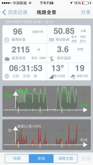 - 最好的手机滑雪应用,没有之一。 - 2011/2012雪季在App Store体育类排名长期位列第一 - 目前在中国以及全球已经有上万雪友在使用,被证明是最精确最专业的滑雪追踪记录软件。 功能简介: - 记录速度,海拔,滑行距离以及滑行路线 - 自动分析滑降次数 - 自动分开保存每次滑降线路以及缆车线路,避免地图上一团乱麻(其它传统GPS记录类软件无法做到) - 滑行轨迹动画回放 - 低电量保护 - 支持GPS数据导出,可以通过邮件分享给朋友或者导出到Google Earth - 可以在Google Earth里实现3D动画回放 - 增加“找回丢失的数据”功能,以前因为闪退丢失的数据全都…