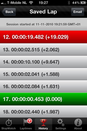 赛车圈定时器HD是一种单圈时间测量与iPhone秒表iPad的应用。 无论你在路上或赛道一样,骑自行车或运行parcour,Laptimer高清记录您的:当时一圈,平均圈,最快圈速,最慢圈速和总时间。 (附Laptimer高清下一版本将支持地理定位感知和地图,路线!) LAP的定时器高清特点: *有关工程iPad和iPhone! *支持纵向和横向的意见 *用户友好的设计 *易于使用 *显示当时一圈,平均圈,最快和最慢的腿上,总时间。 *立会话数据保存 *电子邮件立会话数据 *尼斯主题的碳纤维看 拯救你的单圈时间: Laptimer高清保存在屏幕上Laptime…