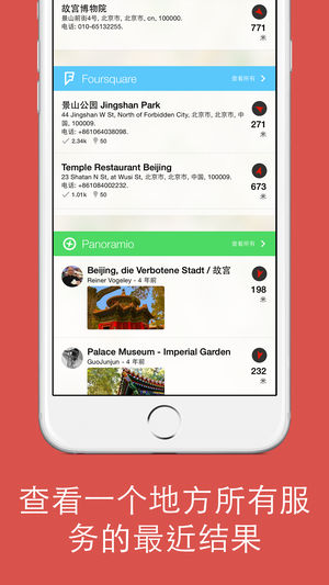 用于iPhone的位置浏览器 Localscope是你的世界的一扇窗户,让你以前所未有的方式探索你的周边世界。可使用多个本地搜索引擎、社交网络、媒体共享服务及其他应用程序的含地理标记的信息,来发现周围的人和地方。 • Named the best iPhone Navigation app in the App Store Rewind 2011 • Featured by Apple as Editors' Choice, App of the Week, Staff Favorites, What's Hot 主要功能 • 探索各种服务汇聚的含周边地理标签的资讯及媒体 • 直观的仪…