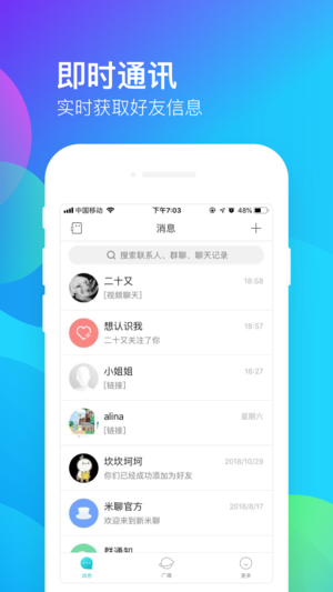 2018新版,全新的聊天体验,优化广播内容,在新米聊等你来! 【内容提要】2018年是小米的8周年,也是米聊的8岁生日。8年来很多米粉在米聊上认识了很多有趣的人,也结识了对自己一生之中至关重要的人。8年是一段延长的时间,庆幸的是8年来我们还在。 =======新米聊优化的功能======= 【全新聊天】优化聊天体验,完善了群聊功能,让大家的群聊更加顺畅贴心。 【优化广播】与好友分享你的最新动态,支持文字、图片等类型的广播,在这里你可以随时随地看到朋友们的动态。 小米科技 诚意出品 意见反馈: mishu@xiaomi.com