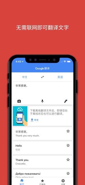 功能介绍: Google 翻译同时支持在线翻译和离线翻译,只需要提前下载语言包,在没有网络情况下也能实现即时翻译。 通过摄像头取词照片扫描等功能,实现了照片或实景翻译的功能,无需手动输入,翻译过程更加便捷高效。 开启麦克风即可实现语音翻译和交流,出国旅游和沟通不在是难题,支持多国语言语音实时翻译。 谷歌翻译实现了93种语言文字手写输入的强大功能。 使用情景: 出国旅游使用Google 翻译软件帮助您顺畅与当地人沟通交流,语言不通不再是问题。 语言学习时使用谷歌翻译查找词汇句子进行翻译,还可以使用语音功能掌握外语发音。 工作中借助谷歌翻译进行文档文件拍照翻译,简单便捷的操作过程,精准的翻译结果…