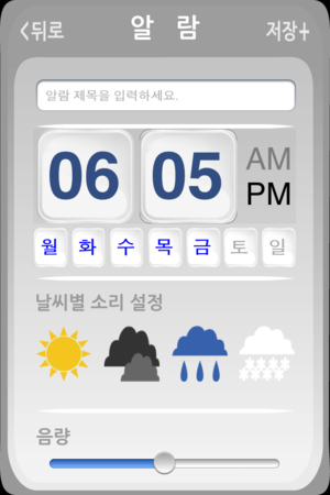 날씨와 알람을 하나로! (날씨 App + 알람 App) 맑음, 흐림, 비, 눈 네 가지의 알람음 설정을 통해 아침 알람음을 듣는 순간 오늘의 날씨를 알 수 있다!! 집 에서 나설 때는 날씨가 화창해서 우산을 챙기지 않았는데, 갑자기 쏟아지는 비에 당황한 경험은 누구나 한 번쯤은 가지고 있습니다. ‘Weather Alarm'은 아침 기상 시 그 날 날씨에 따른 알람음을 제공하여 날씨에 미리 대비할 수 있도록 합니다. 'Weather Alarm'은 기상청에서 제공하는 Data를 연동하여 날씨에 따라 각기 다른 Sound와 Imag…