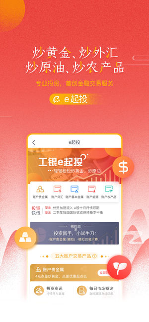 工行手机银行4.0正式上线,为3亿客户带来全新使用体验!通过精心打磨,不断创新突破、迭代优化,此次工行手机银行4.0将让客户享受更顺畅、更稳定、更安全、更放心的金融服务。 工行手机银行4.0实现多重焕新升级: 1、页面体验更优化:主页签全面改版,采用业内主流的楼层化展现形式,重塑180个功能图标,提升整体界面品质感; 2、转账汇款更方便:一键大额转账、“支付密码/指纹/刷脸+短信”组合认证,多种方式,自由选择,使用更方便; 3、账户查询更轻松:“随心查”支持5年账务可追溯,图形化记录收支曲线,生活轨迹一目了然; 4、投资理财更智能:“e起投”覆盖贵金属、外汇、能源、农产品及基本金属五大账户类交…