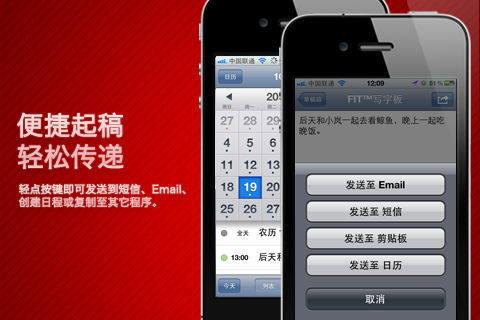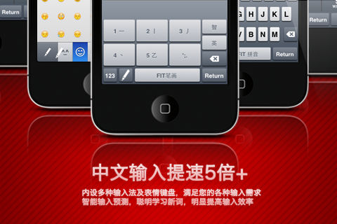 FIT输入法团队强势打造—FIT™写字板—iPhone/iPad上的极速个人记事工具! ★★★一键云备份,采用云笔记同步服务,将所有笔记、数据保存在云端,不管在什么地点、iOS设备上都可续写灵感,让写字板信息在各种设备之间无缝传递。★★★ ****FIT写字板简介**** FIT™写字板是由FIT输入法团队精心打造的一款简单快捷的个人备忘记事工具,内置云端同步机制,让信息在不同客户端之间无缝传递,内嵌五笔、K9、双拼、全拼、笔画以及emoji表情键盘,极大提升你在苹果设备上的文字输入效率和乐趣,配合快写工具栏,便捷编辑文字的同时,可以使文档结构更加有条理和容易阅读,一键极速发送至email、短信、剪贴板、日历,让你的iPad、iPhone不用越狱也可享受FIT输入法所带来的中文输入快感。(注:FIT™写字板并非系统输入法) ****FIT写字板功能特点**** 1、支持全拼、K9(九键)、双拼、五笔、笔画等多种输入法。 2、Emoji表情键盘,多达460+种的表情或图标符号,随手可得! 3、一键云备份,iPhone/iPad写字板信息无缝传递,数据永久保存,随时随地续写灵感。 4、支持横屏输入。 5、支持全拼双拼混合输入,拼音五笔混合输入,令你的输入效率大大提高。 6、支持外接30针接口物理键盘及蓝牙键盘输入,并自动切换为数字选字。 7、写字板内容可一键发送至短信、email、剪切板以及日历,与你的日常输入型应用无缝结合。 8、时间日期智能识别,在发送到日历时,写字板可以识别文字中的时间信息并自动添加到时间栏。 9、草稿箱功能可轻松保存你的常用短语,临时记录保存你的想法。 10、为你打开系统的emoji表情键盘,让你的文本输入从此充满乐趣。 11、支持字体大小调整。 ****Emoji键盘Q&A**** 1、Emoji键盘是什么? Emoji键盘是苹果iOS系统内置的表情符号键盘,有超过460个图标可供选择! 2、在其他什么地方可以使用 Emoji 表情? 电子邮件、短信或您可以输入文字的几乎任何地方!– 但,这些图标只在 iPhone 或 iPod Touch 上可被正常显示,其他地方会显示方格或者空白字符等乱码。 3、FIT写字板内置的Emoji表情 和其他 Emoji 应用程序之间有什么不同? 所有支持 Emoji 的应用程序功能上都是完全一样的!只不过,有些会因此收你钱! 有些Emoji App只支持iPhone,由于FIT 写字板同时可以用于iPhone和iPad,所以你不需要再另外去寻找那些所谓的HD版Emoji了! 4、我只能在FIT写字板中使用Emoji键盘吗? 安装了FIT写字板后即可在“设置”->“通用”->“键盘”->“添加新键盘”里添加“表情符号”键盘,最后重启一下“设置”(好吧,你重启一下机器也是可以的)。然后,在什么地方都可以用啦! ****FIT常见问题答疑 **** Q:为什么不能把FIT™写字板内置的输入法做成系统输入法,直接在短信、Mail等App中使用? A:因为苹果公司不允许第三方输入法安装成为系统级输入法,以保证所有用户有大致统一的输入体验和操作安全。 Q:FIT中文输入法有哪些优胜? A:优胜主要体现在6个方面:第一, 强大的中文词库支持;第二, 多种键盘可供选择, 如9键拼音键盘, 以方便不同用户适应;第三, 智能输入算法, 学习用户新造词;第四, 模糊音设置, 方便不同方言口音的用户;第五, 独特的混合输入模式, 如双拼和全拼混合、五笔和全拼混合;第六, 可用汉语拼音打出繁体字。 更多新奇产品更多有趣功能,请关注我们: FIT官网:http://funinput.com/ FIT输入法微博:http://weibo.com/fit4cn