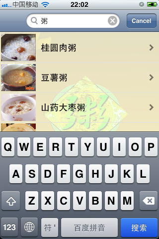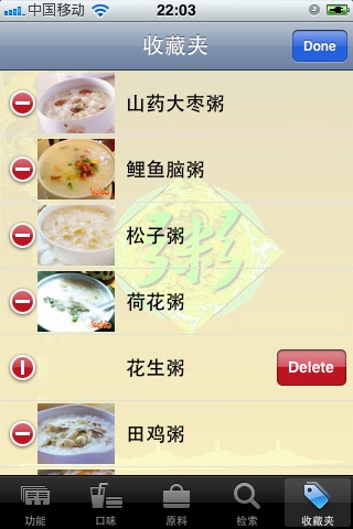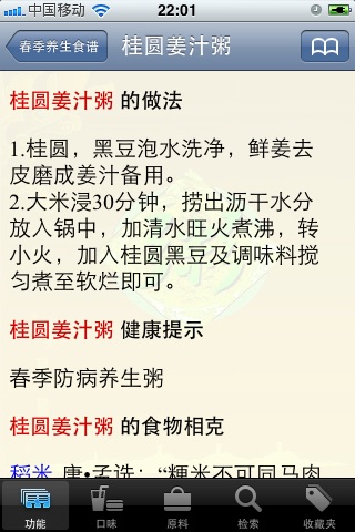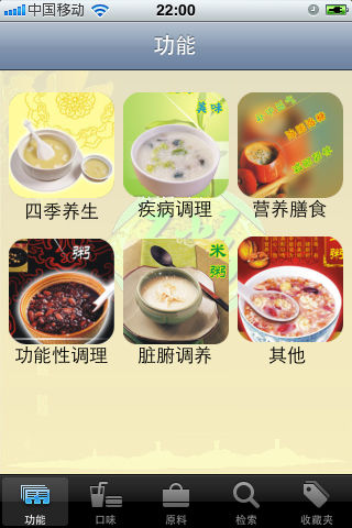该应用收集了1200多种精美实用的粥谱,每个粥谱都配有原料,做法,口味,烹饪方式以及注意事项 用户可以按照口味、原料和粥谱名称进行浏览和查询 应用中的粥谱还按照菜系、养生菜谱、疾病调理、脏腑调养、功能性调理、营养膳食及其他等进行详细的分类,满足各种用户的需求。