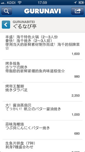在日本,如果想寻找美食餐厅,就请锁定GURUNAVI美食搜索网站!只须指定地区和您想一饱口福的料理,就能轻松、迅捷地找到最佳就餐地点。美食美刻,愿与君分享,提高美食新境界。请查询iPhone 手机版,免费下载。GURUNAVI日本美食。 对应语言: 英语, 韩国语, 简体中文, 繁体中文