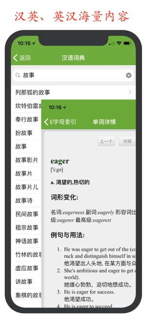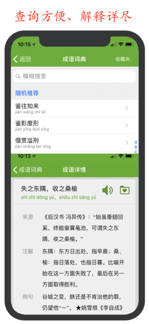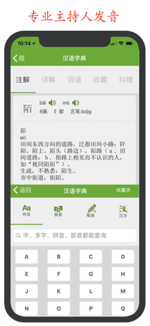 重要提示: 1.汉语字典和成语词典的专业主持人诵读。 2.所有数据均为离线数据。 3.最全的3万成语词典和优化成语词典的体验库 APP包含了汉语字典、汉语词典、英汉小词典、成语词典、同义词和反义词、中国历代诗词,经典歇后语,脑筋急转、绕口令、名言名句等10多大版块。 ◎ 汉语字典 1、汉语字典专业主持人诵读。 2、打造最好用、查询最方便、字库最全的汉语字典。 3、汉语字典包括了海量字库一网打尽 4、汉语字典:汉字查询 5、汉语字典:拼音查询:模糊查询和索引查询 6、汉语字典:部首查询:模糊查询和索引查询 7、汉语字典:笔画数查询 8、每个字包含了详细的字的解释和用法,以及字的拼音、笔划、部…