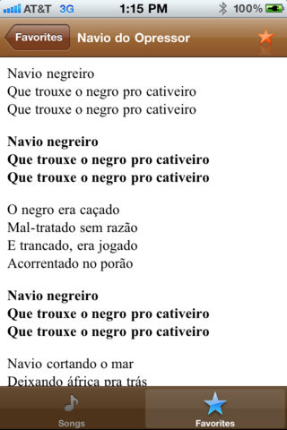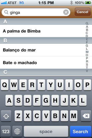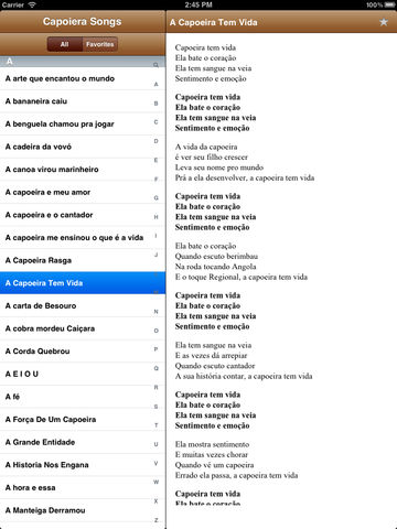 Capoeira Songs provides lyrics to many capoeira songs. Users can find songs to sing in the roda. Search song list Mark favorites View song lyrics