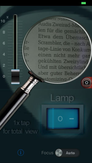 看不清楚纸上的小字?有办法!现在您可以随时随地使用专属的便携式放大镜阅读 - 方便易用!可放大近10倍且具有内置灯,使您即使在灯光昏暗的情况下仍可以轻松阅读。 请注意使用模式: 放大镜通过您手机的内置摄像头运作。将手机置于离希望放大物体至少5厘米处,并允许摄像头先进行聚焦 (使图像清晰化),接着通过移动滑片进行放大。 使用小贴士:请勿移动过快!