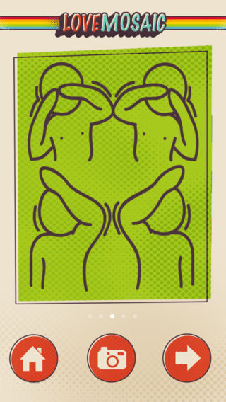 这是一款独一无二的制造浪漫的相机应用,可以把你的照片拼成爱心喔! 打开软件,你会惊奇地发现屏幕里出现了清新布艺的爱心。 你可以按照app中模板的提示,连拍数张照片,用手拼成一个爱心,是不是很浪漫呢!看到的人一定都会说一声:Cool! -------------------------------------- 微博发作品,请@LoveMosaic。