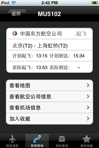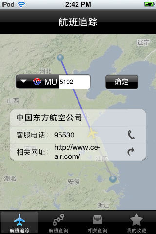 接机时,你还在为计算时间而费心吗?你还为飞机误点而担忧吗? 不用担心,现在有了航班追踪,只要有网络环境您就能随时随地的了解航班的实时情况及飞机所处的位置。 让你的接机更省力更安心。 航班追踪几乎包含了全国所有的航线信息,拥有此应用,您就可以在地图中俯瞰飞机,让您更迅速直观的了解航班情况。 应用程序特点: 1.根据航班号追踪你想追踪的航班。 2.根据城市查找到查找你要的航班并追踪该航班。 3.查找相关信息,例如航空公司,机场服务电话和网址。 4.可将常用的航班添加到收藏。 附赠离线资料: 各航空公司官方网址及服务电话 各大城市机场官方网址及服务电话 为感谢大家的支持,我们将不定时的提供促销免费活动,感兴趣的朋友可关注我们的微博了解最新情况。 sina微博: http://weibo.com/mkios