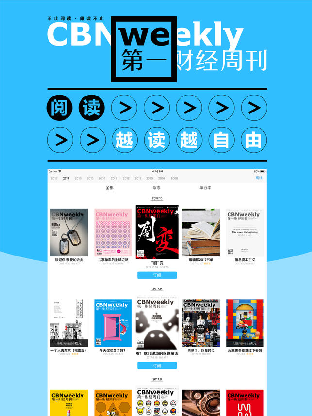 App Store最畅销的中文杂志《第一财经周刊》3.2.0版更新啦, 商业就是这样,阅读如此轻松! 《第一财经周刊》致力于关注公司现象和商业新闻,为公司人读者群提供各行各业商业创新的信息与观点。 【3.2版本更新】 1、给你全新的视觉体验。不仅与杂志视觉风格一致,同时还增加了动态元素,使用起来活泼有趣。 2、付费阅读体验再次升级。《单行本》和杂志合并,各类付费产品都实现了离线阅读。 3、 十年好内容寻找更轻松。通过大数据分析,我们对创刊以来所有文章都进行了标签化,你可以更快速的找到他们。 4、iPad版本还提供杂志PDF版阅读,习惯纸刊阅读的朋友们不要错过。 ———————————…