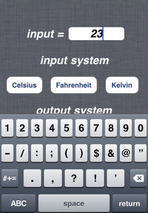 This app converts temperature from Celsius, Kelvin, and Fahrenheit to the other two systems in a simple easy to understand format.