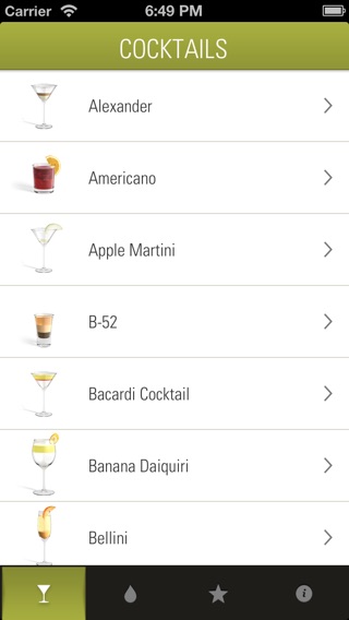 Based on the famous cocktails poster by Konstantin Datz, you now have the world’s finest cocktails all in one greatly designed iPhone-App! Watching cocktail recipies has never been that pleasant! The unique look of each cocktail provides you an incredibly catchy overview over particular recipe. ONLY THE BEST INGREDIENTS In order to guarantee you the best recognition value as possible, every ingredient has it’s own droplet. So you are able to differentiate them by their material, color and texture! FILTER YOUR NEEDS We developed an unique filter system which enables you stunning possibilities! You want to choose a cocktail by available drinks in your housebar? No problem! --- WHAT YOU GET – 79 recipes of the most common cocktails all over the world. – 67 different ingredients. – Nice trivia for every single cocktail AND every ingredient. – Unique clarity – Full German and English language support --- PREPARE YOUR HOUSEBAR UTILITIES! Thanks to the awesome UI structure everyone will be in a wink of an eye able to prepare the cocktail of his choice! The only thing we can’t divest you of is buying the necessary ingredients …