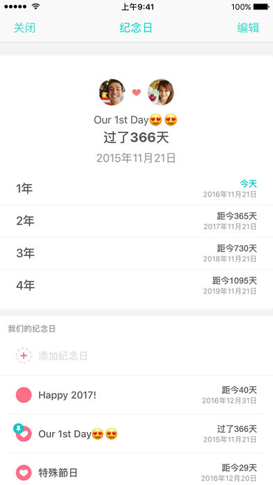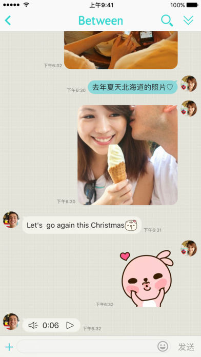在 Between, 您能够建立完全只属于两个人的私密空间。 Between 提供情侣们完全私密的平台,让彼此分享只属于两人的小世界。我们欢迎你/妳一起加入 Between 分享生活,增进彼此关系 - 聊天: 随时与对方分享生活点滴。 Between 提供安全、私密的聊天功能,让你能即时传送 可爱的贴图、甜蜜的话给另一伴。从此不再遗漏最重要的人传的重要讯息啰! - 回忆功能: 将甜蜜合照、贴心的语音留言在 Between 上储存并分享。轻松建立属于你 们的两人世界。还可以随时一起回忆每个美好时光! - 拉近远距离: Between 帮你们拉近远距离的恋爱,随时更新对方所在地、当地气侯。 让彼此的心零距离! - 分享行事历: Between 让你分享行事历,彼此贴心提醒重要纪念日,节日,约会等活动。 再也不用担心忘记任何一个重要日子啰! 还有更多其它好用的功能! - 隐私设定: 建立好记的密码锁让甜密的时光永远不外流! - 回忆宝箱: 随时回忆每个美好时光,照片与聊天记录。 - 活动宝箱: 在这里可以找到专属情侣们的活动与超级优惠! - 大量贴图: 超丰富的可爱贴图库让每个情景、情绪都瞬间抓住。 - 自订背景: 选择最喜欢的合照当首页,打开 Between 就可以看到彼此! - Between Plus:升级一个月 ($1.99USD)/ 六个月($8.99USD)/ 一年($ 11.99USD)升级获得更多功能,包含主题更换,限量贴图,清除部份广告,传情书,更长的语音讯息。用户可先免费体验升级,当体验期结束后才会开始跟你的 iTunes 帐户收费。订阅 Between Plu s后,系统会每个月自动扣款,若欲取消只需于前订阅期间结束前 24 小时内也可以在您的 iTunes 帐户内取消“自动更新”功能。完成付款后,系统将无法退费,故请付付前确认您的购买是否正确。我们也有提供终生会员付款一次 (2,000颗爱心,$ 39.00USD) 详细条款,条约及隐私权政策,请上 https://between.us/policy/terms 或 https://between.us/policy/privacy 从 Between 开始,搜集每个重要的时光,不管是常常见面的情侣还是远距离的恋人,Between 让你们的恋爱零距离,让 Between 拉近彼此的心吧! 更多 Between 相关的讯息,请参考我们的隐私权政策及使用条款,或到本页末连结 Between 官网了解更多。
