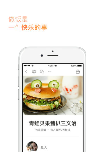 • 菜谱更全,人气更高的美食社区; • 苹果官方 App Store 精选推荐的美食应用; • 被央视CCTV新闻频道报道为年轻人流行的生活方式APP。 ----主要功能----- • 时令流行:根据不同节气,告诉你应该吃什么,三餐不重样; • 榜单推荐:进来看看被两万多人做过的一道菜谱是什么? • 人气社区:你尝试发布一道菜谱,会获得最真实的厨友点赞,交流心得提升厨艺; • 活动奖品:定期与品牌联合发布线上和线下活动征集令,赢奖品,交朋友; • 购买食材:联合达人推荐,帮你挑选最有品质的食材和厨具,瞬间成为身边人仰慕的美食专家。 -----联系我们----- • 微博和微信公众号:下厨房…