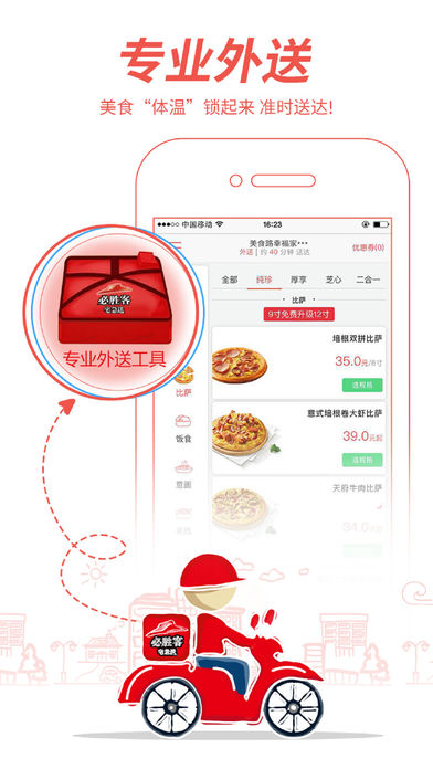 专业比萨外送,来自必胜客宅急送的官方订餐APP 受否厌倦了出门的繁琐,惧怕了排队的长龙? 下载安装必胜客宅急送官方订餐APP,小手一点,百款美食任你选。专业外送欧巴必定准时将美味新鲜送上门。现点现做,专业烫手包和冰极包,即使宅也要让你宅得有滋有味! 无论你是Pizza Lover的西式餐点狂热族,还是中式口味的铁杆粉丝。必胜客宅急送都能满足你务必挑剔的嘴。新品随时出没,吃货们准备好迎接这场来自美食的狂轰乱炸吧! 加入会员,即使荷包扁扁也能让胃口满满,保住荷包喂饱嘴!独家优惠促销活动随时享!