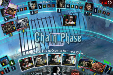 The sun has retreated from the earth, a week ago it shone its last, and now chaos has begun. People fear for their existence, and while scientists struggle to explain the phenomenon, the creatures of nightmare began to appear. Fear the Night! Gamezebo: 5 Stars - “Playdek has once again hit it out of the park.” Appolicious: 4.5 out 5 Nerd Appropriate: “Nightfall on iOS is a great way to play cards with friends when you can’t get a gaming crew together.” New In-App Purchase Expansion: Nightfall: Martial Law Nightfall: Martial Law introduces many new characters, actions and new color combinations for creating chains and achieving kickers. Martial Law will also introduce the new Feed mechanic which will allow players to get even more uses out of their orders. The game also brings to the table a new “Wound” effect that is sure to surprise opponents. In Nightfall, players must master hordes of ghouls, vampires and werewolves as they struggle to gain control of a post-apocalyptic world. Begin with a set of starter Minions then draft cards into your private Archives, play cards into the Chain in order to maximize the effectiveness of your cards and Claim new Minions and Actions to pit against your foes. Attack your opponents every round in an effort to weaken your rivals. Time is limited and only mastering all Phases of the game will leave you standing as the victor at the end of the game. Nightfall for iOS brings AEG's modern horror game to select iPods, iPhones and iPads. HIGHLIGHTS •New In-App Purchase: Martial Law expansion! •Achievements and un-lockable Promo Cards -Ahmad Hassan -Desperate Measures -Pale Fury •Asynchronous multiplayer with game timers •Two start-game modes: Quick Play and Draft •Play with open Wound counts or traditional hidden Wounds FEATURES •Supports 1-5 players (human and/or AI) •3 levels of AI •Asynchronous multiplayer online games •Play against others with “pass and play” multiplayer •Player Profiles •Introductory tutorial to teach you how to play •Maintain and save multiple games •Automatic shuffling, cleanup and scoring •Universal App Also by Playdek Summoner Wars; Ascension: Chronicle of the Godslayer; Food Fight iOS; Can't Stop; Fluxx; Penny Arcade The Game: Gamers vs Evil