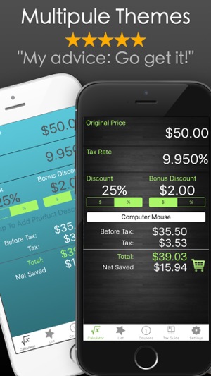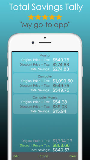 Top discount calculating app in the App Store. For super savers and super shoppers. Check it out today! Features: • Easy to input calculator with sales and tax inputs. • Editable shopping list with export feature. • Sales Tax reference guide (for US only). • Coupon and sales reminders with image c…