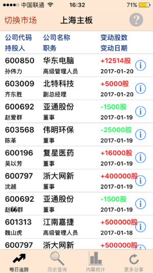 【内幕人追踪】(Insider Tracker)是专注于中国上市公司董事、监事、高管股票交易研究的财经软件,是投资者研究上海、深圳和香港三大证券交易所上市公司,筛选投资对象的创新型金融应用工具。不同于常见的证券分析软件, 内幕人追踪以每日实时更新的内幕人交易记录为经, 以内幕人群体的交易统计为纬, 从大市、行业及个股三个维度立体地协助投资者把握个股、行业及整体市场的投资机会, 远离中国特色的风险泥沼。 无论您是机构投资者,还是个人投资者,如果您能够肯定地回答以下问题,这个软件或许适合您的需要: ●您是否信奉价值投资,希望在实战中学习沃伦.巴菲特、彼得.林奇、安东尼.波顿等投资大师的投资风…