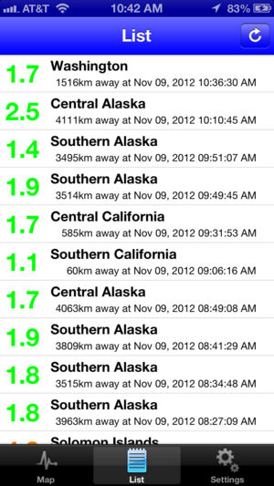 **** Track & follow earthquakes worldwide in real time! **** Main features: * Live USGS data delivered quickly to your phone or iPod * Filter options by Distance, Magnitude, or Time * Full map integration * See at a glance all relevant earthquakes on the map (color coded) * More features coming * F…