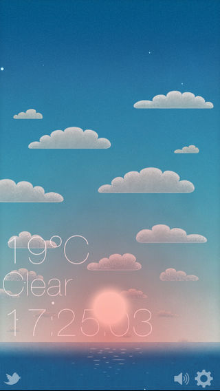 Soaring is a virtual sky, using GPS location and current time to determine the location of the sun and the moon in the virtual sky. Displays time and weather of current location. With extra hardware, Soaring can tells you a much more accurate temperature around you. With Soaring, your iOS device becomes a digital clock with live local weather information and much more. KEY FEATURES - Display current time. - Live accurate local temperature and weather conditions. - Simple yet elegant visual effects. - Display current location of the sun/moon and current phase of the moon. - Switch between Fahrenheit and Celsius. - Tweet the temperature and weather of your location inside the app. - Live Weather, you can now measure temperature around you in real life. (Extra Hardware required, for more information, please visit http://oltica.org/liveweather.html ) We hope you enjoy flying high in the air i.e. Soaring~
