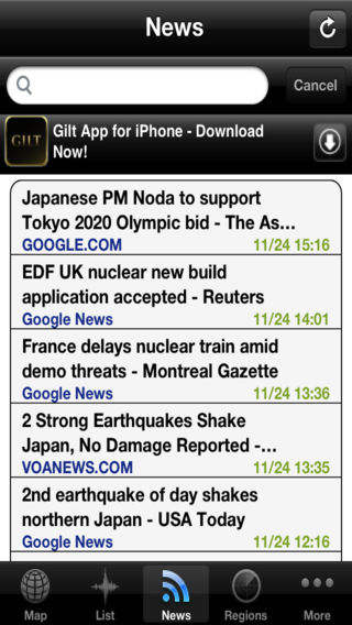 Three years ago, we set out to develop the absolute best earthquake app available for the iPhone. We looked at all of the available earthquake apps and quickly discovered that none of them presented historical earthquake information. Most showed only a few days of data with limited mapping or filtering options. We went to work. Soon after launch of the app, a magnitude 7 earthquake devastated Haiti. Today, if you want to look at the initial Haiti earthquake or any historical event on an iPhone, Earthquake Alerts is absolutely your best answer. It's also the ONLY WAY TO SEE the initial M8.8 CHILE EARTHQUAKE and its HUNDREDS of subsequent aftershocks on an iPhone. The Japanese earthquakes that caused the March 11th tsunami that badly damaged the Fukushima nuclear plant are also available. ****No Ads**** Earthquake Alerts uses pinpoints nearly a million earthquakes worldwide. More than 30 years of historical earthquake information is now available in the palm of your hand. Other earthquake apps show only 7 days of data... Why not see the whole picture? See results in Map or List views. Filter results alphabetically, or by magnitude, proximity, or date and time. Save areas of interest for future reference. Search broadly by Region or specifically by City with more than 300,000 cities available. ***AWESOME NEW FEATURE**** Earthquake Alerts now incorporates up-to-the-minute Earthquake related news curated and aggragated in one spot, always at your fingertips! Search a year's worth of news stories by keyword and read articles that you might never knew existed. Earthquake Alerts Standard Features * GPS Location Services provide your current location and display up to 1,000 earthquakes. * Historical worldwide earthquake data from multiple sources dating back to 1973. * Historical, searchable earthquake related news stories. * Earthquake updates are provided automatically as new events occur. Special Features * Tap a pushpin to see earthquake details including location, date and time. * Also see magnitude, depth, distance from your location, and more. * Manual Refresh enables you to pan, zoom, and refresh the map on demand. * Search for other locations by Region or City name with automatic lookups. * Display earthquake information for a city, state, country, or worldwide. * Browse historical earthquake facts in “Did You Know?” * Use Settings to create defaults for data presentation by year, magnitude, and number of earthquakes displayed. We deliver the Most Earthquake Data * See more than 31 years of earthquake data. * The National Earthquake Information Center locates more than 20,000 earthquakes each year. All are visible within our application, historically, for over 30 years!