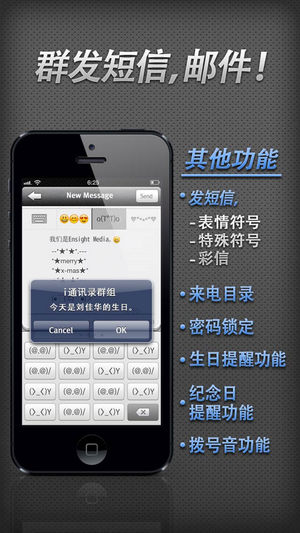 通讯录群组是一款简单易用、界面美观、齐全功能的通讯录软件! 便捷直观的分组管理 + 建设私密保群组 + 提醒生日功能 + 快速拨号 + 搜素! ◆亮点功能◆ >[便捷直观的Drag&Drop (拖放)方式]:可以用Drag&Drop(拖放)方式来群组移动、选择及删除 >[短信群发/邮件发送/多种图表]:一键短信群发或邮件群发,包含多种图表类型。 >[一键打电话/发短信]:登录在收藏家的号码可一键打电话或发短信。 (通过设置可以直接移动到iPhone内的短信App) >[快速拨号]:与收藏夹连动,把收藏夹的缩短数字按长点就可以打通。…
